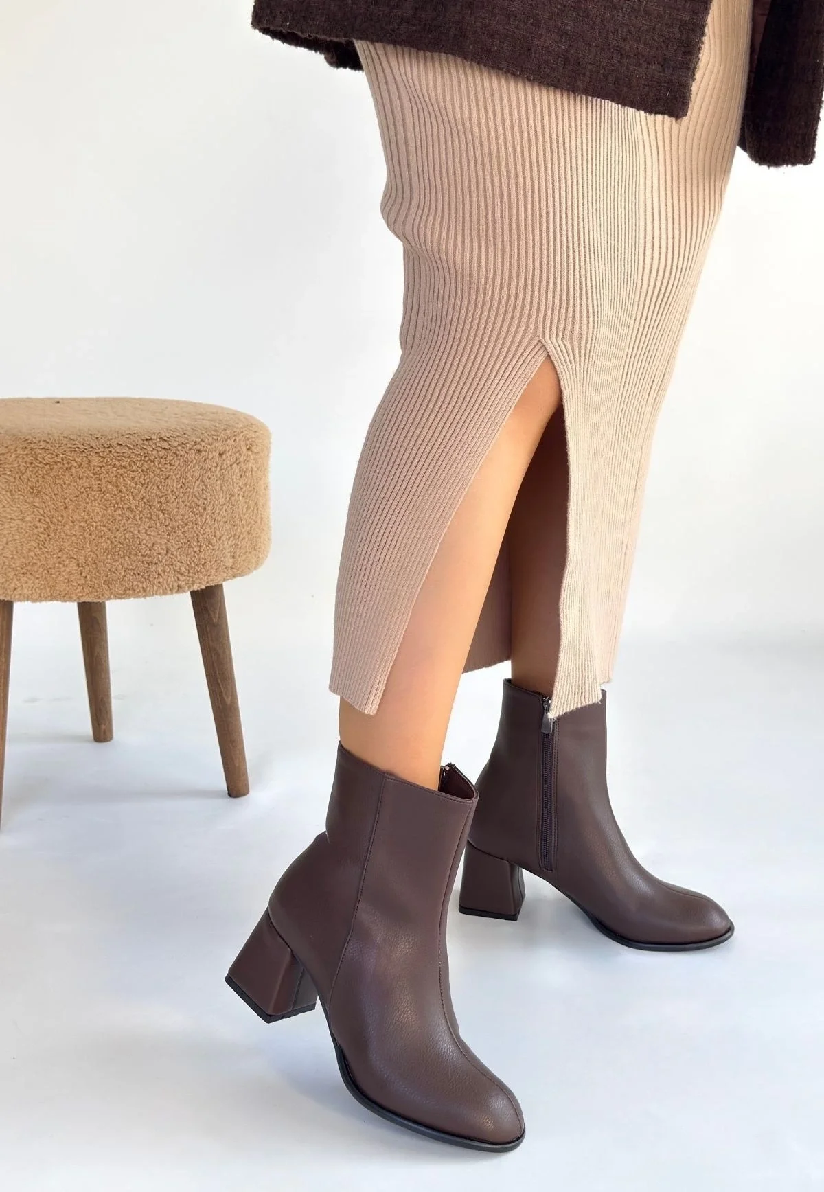 Tendy Kahverengi Cilt Topuklu Bot