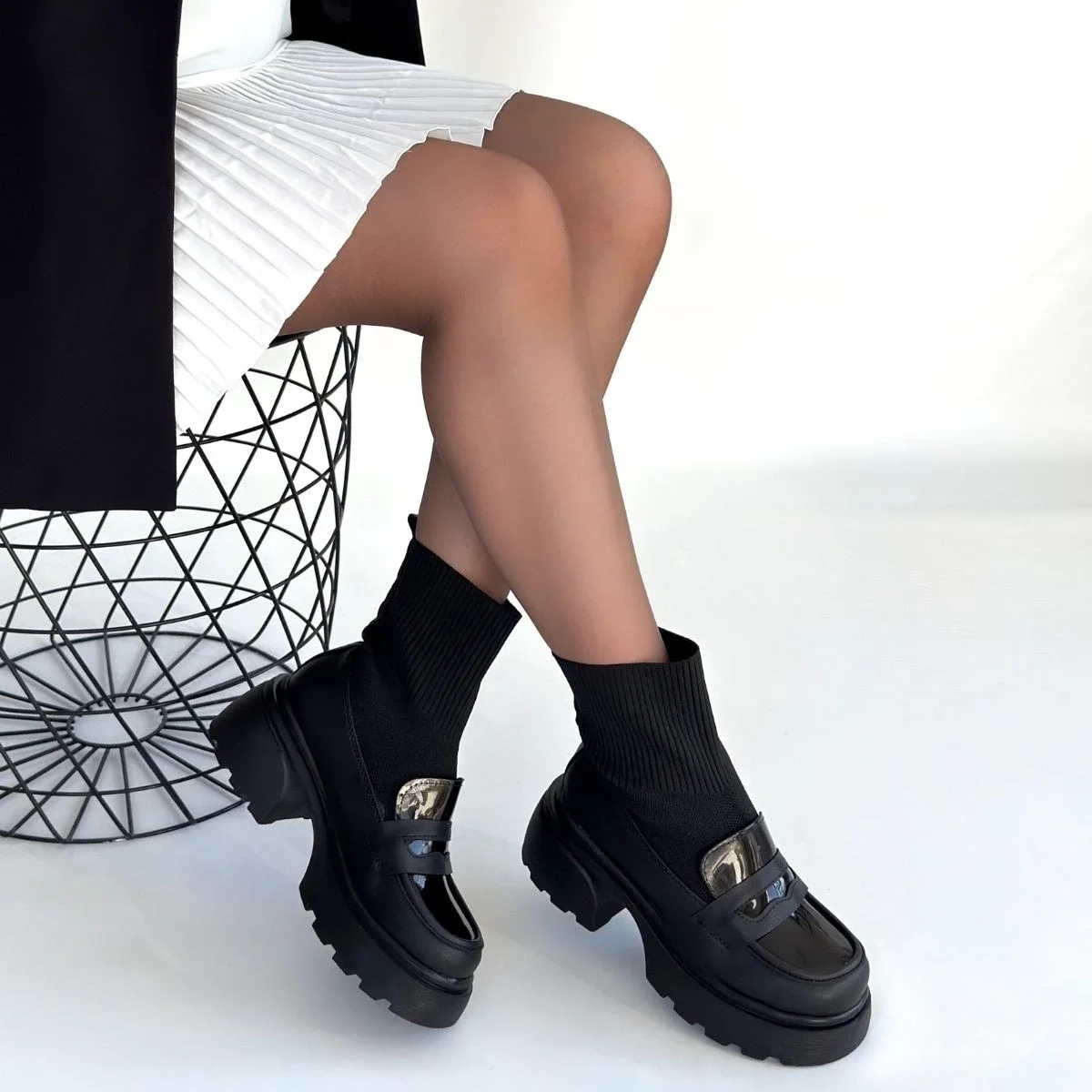 • Wanye Siyah Cilt Cilt Streçli Bot