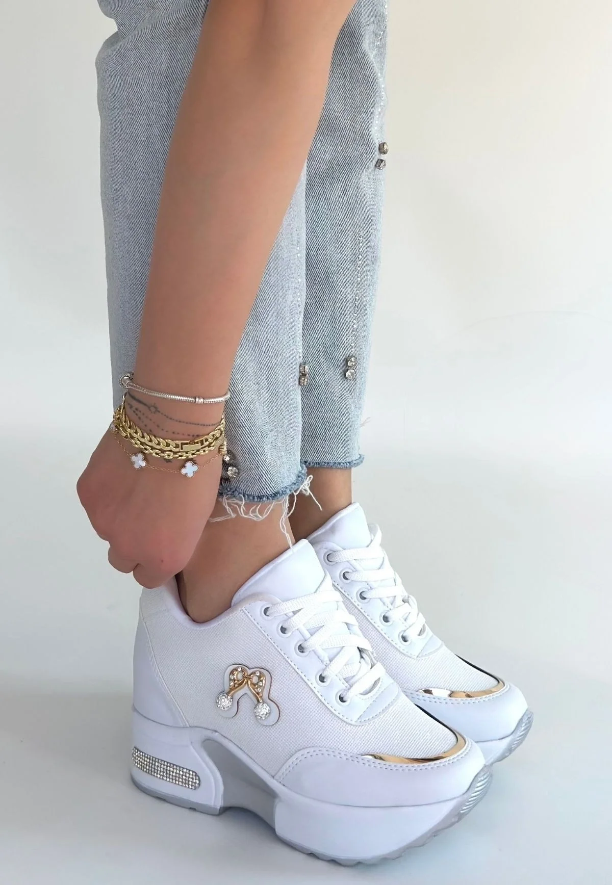 Wody Beyaz Cilt Simli Bağcıklı Spor Ayakkabı