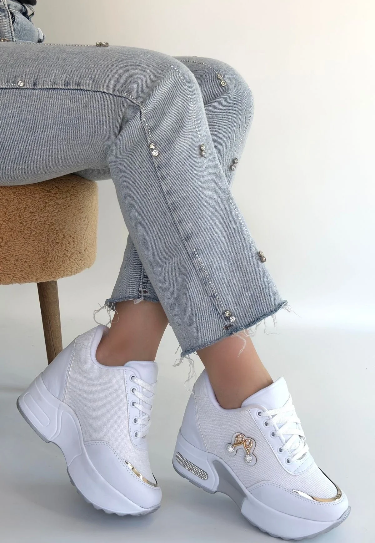 • Wody Beyaz Cilt Simli Bağcıklı Spor Ayakkabı