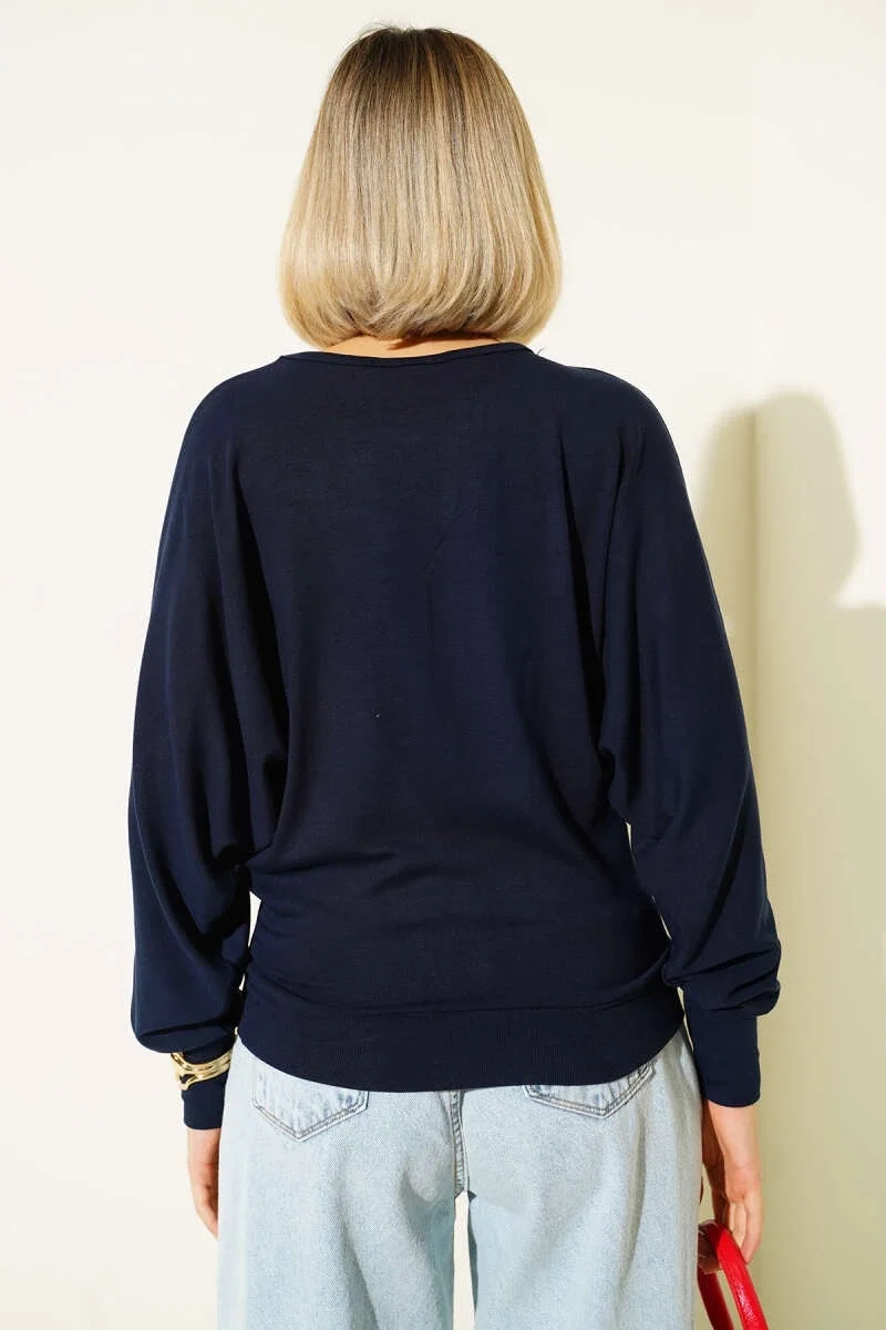 Yarasa Kol Salaş Bluz Lacivert T4273, tarzınızı yansıtmak ve şık görünmek istediğiniz her an yanınızda olan bir parçadır.