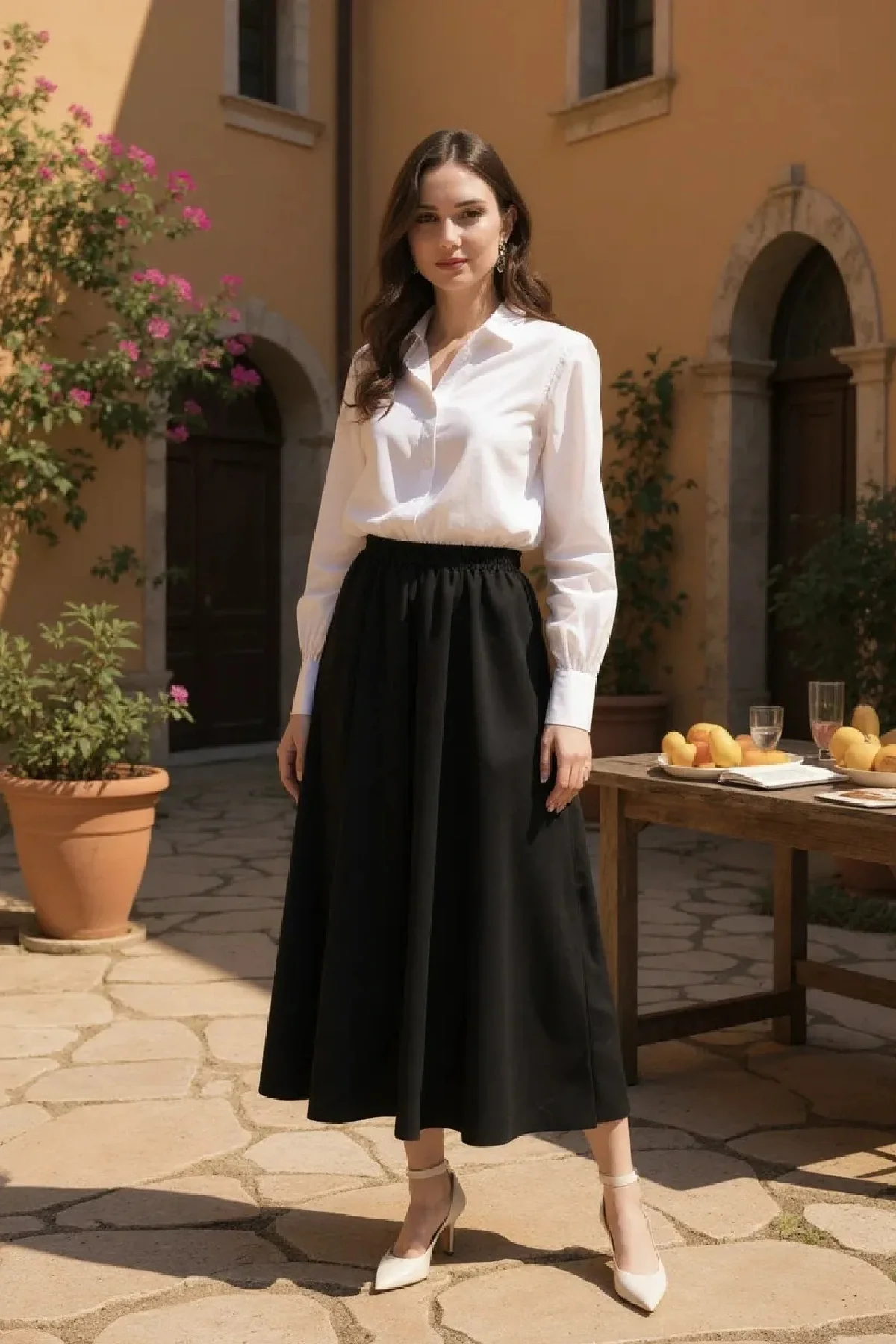 Modern ve zarif tasarımıyla öne çıkan Kadın Siyah Double Kumaş Beli Lastikli Cepli Uzun Etek, hem şıklığı hem de rahatlığı bir arada arayan kadınlar için özel olarak tasarlanmıştır. 95 cm uzunluğu ile vücuda dengeli bir görünüm kazandırırken, double kumaşın tok ve kaliteli yapısı eteğe hoş bir duruş katmaktadır.Günlük yaşamda rahatlıkla kullanılabileceği gibi, iş hayatında, özel günlerde ya da davetlerde de stilinize zarafet katar.Double kumaş teknolojisi, eteğin formunu uzun süre korumasını sağlarken kırışıklığı minimuma indirir ve gün boyu konforlu bir kullanım sunar.Beli lastikli tasarım sayesinde farklı bedenlere uyum gösterir ve esnek yapısıyla hareket özgürlüğü sağlar.Yan cepleri ise şıklığın yanında işlevsellik kazandırarak pratik bir kullanım imkânı verir.Bu uzun siyah etek, tişört, gömlek, bluz, basic crop ve tuniklerle kolayca kombinlenebilir.Sneaker, sandalet ya da loafer ayakkabılarla sportif ve rahat bir görünüm elde edebilir; topuklu ayakkabı ve zarif aksesuarlarla ise klasik ve şık bir tarz yakalayabilirsiniz.Özellikle tesettür kombinlerinde uzun boyu sayesinde güvenli bir kullanım sunar.Yaz-kış dört mevsim tercih edilebilecek bu etek, dolabınızın en kurtarıcı parçalarından biri olacak.Zamansız şıklığı ve konforu bir arada sunan Kadın Siyah Double Kumaş Beli Lastikli Cepli Uzun Etek, hem günlük kullanımda hem de özel günlerde şık ve rahat bir alternatif arayan kadınlar için ideal bir seçimdir.Tok ve kaliteli yapısıyla öne çıkan double kumaş, eteğe modern bir duruş kazandırırken uzun süreli kullanımda formunu korur.95 cm boyu, tesettür giyime uygun bir uzunluk sunarak güvenli ve zarif bir stil sağlar.Lastikli beli sayesinde farklı bedenlere kolayca uyum sağlayan bu etek, gün boyu rahat hareket etme özgürlüğü sunar.Yan cepler ise hem işlevsellik hem de modern bir görünüm katar.Siyahın asil şıklığı ile her renkle kombinlenebilir olması, dolabınızın en çok tercih edilen parçalarından biri olmasını sağlar.Kombin ÖnerileriKlasik & Şık Kombin: Siyah eteği beyaz uzun kollu gömlek, ipek şal ve topuklu ayakkabı ile kombinleyerek davetlerde sofistike bir görünüm elde edebilirsiniz.Günlük & Rahat Kombin: Basic uzun tunik, soft tonlarda pamuk şal ve spor ayakkabı ile hem şık hem de konforlu bir gün geçirebilirsiniz.Ofis Stili: Eteği pastel tonlarda bir blazer ceket, uyumlu bir şal ve zarif loafer ayakkabılarla kombinleyerek profesyonel bir görünüm yakalayabilirsiniz.Kış Kombini: Kalın triko kazak, oversize pardösü, desenli şal ve botlarla eteği soğuk havalarda da şık bir şekilde kullanabilirsiniz.Minimalist Tarz: Siyah eteği bej tonlarında uzun gömlek, sade bir şal ve düz babetlerle tamamlayarak zahmetsiz bir şıklık oluşturabilirsiniz.Ürün ÖzellikleriKumaş Türü: Double KumaşBel: Lastikli, esnek yapıDetay: Yan cepliBoy: 95 CMKullanım Alanı: Günlük yaşam, iş hayatı, ofis kombinleri, davetler, özel günler, tesettür kombinleriBu parça, şıklık ve rahatlığı bir arada arayan kadınların dolabında her mevsim tercih edebileceği kurtarıcı bir seçenek olacaktır.]]>